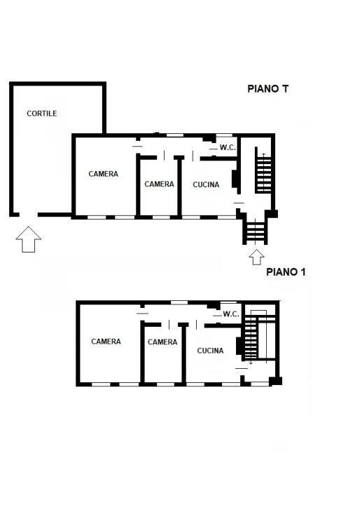 Al piano terra si trovano un ingresso, una cucina abitabile, un bagno e due ampie stanze utilizzabili come camere, soggiorno o locali accessori.